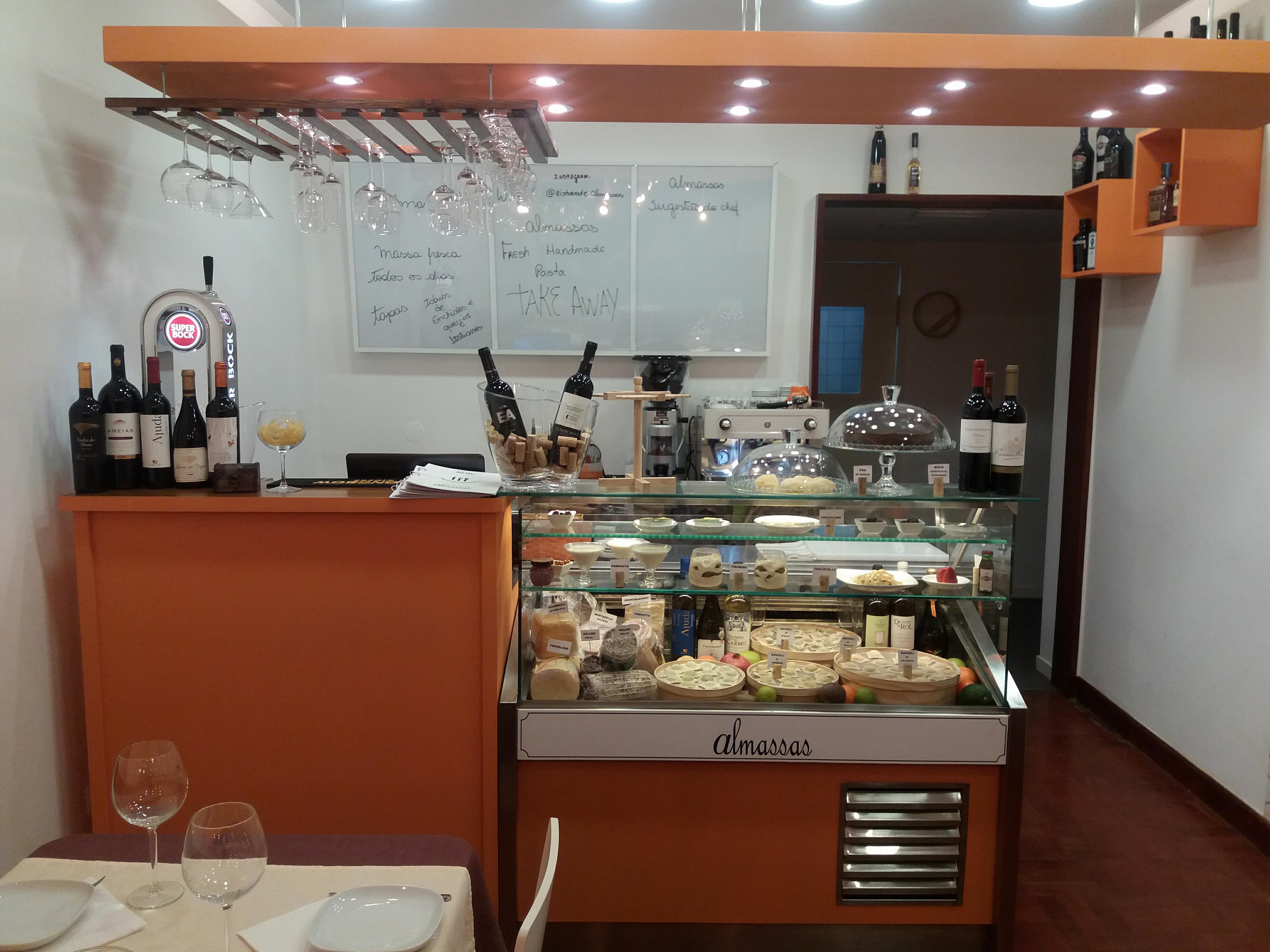Há ainda espaço para pratos de peixe e de carne, assim como para tábua de enchidos e queijos italianos. No Almassas, há todos os dias um menu executivo aos almoços, que custa 8,70 euros e inclui entrada, que pode ser sopa ou salada, prato, sobremesa, bebida e café.