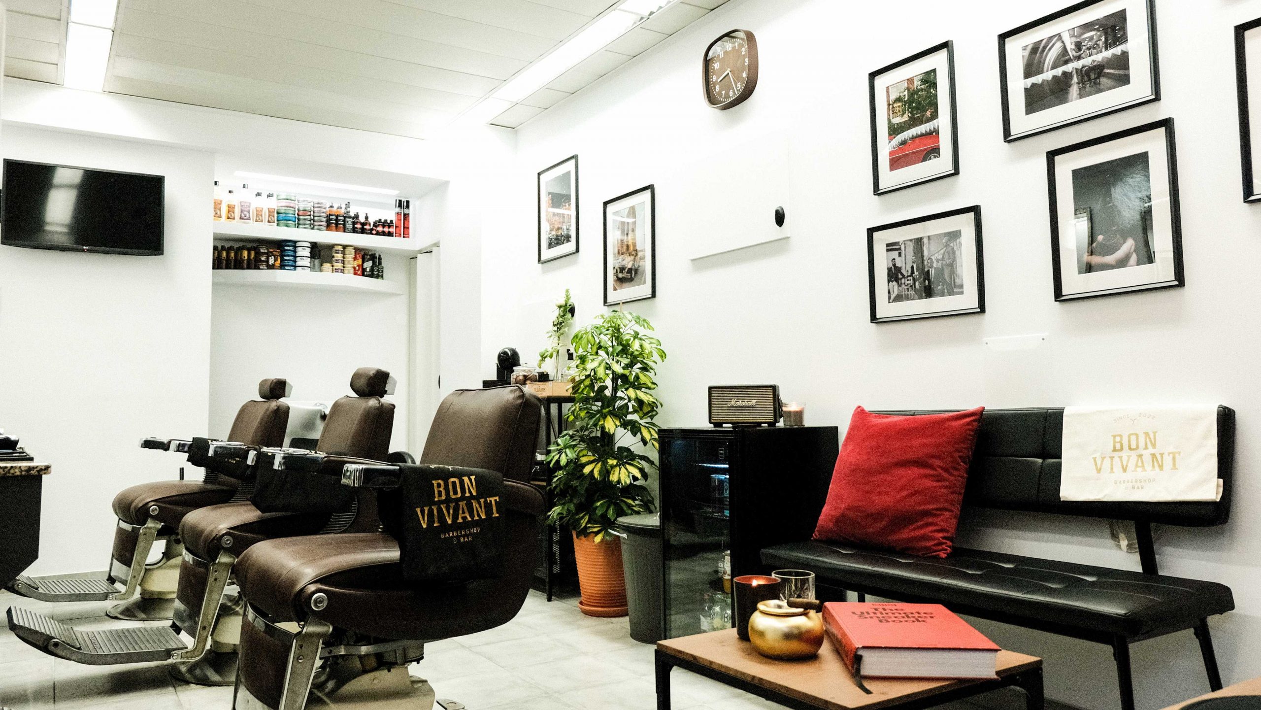 No interior, as cadeiras Belmont surpreendem pela cor e pelas massagens, a playlist alterna hits de Jazz & Blues, na esplanada exterior pode apreciar um copo de Nikka From the Barrel, um café ou um refrigerante e o staff recebe-o com uma farda clássica que representa em tudo a imagem de um “Bon Vivant”. O horário é das 9h30 às 20h de segunda a sábado e os preços variam entre os 12€ e os 50€.